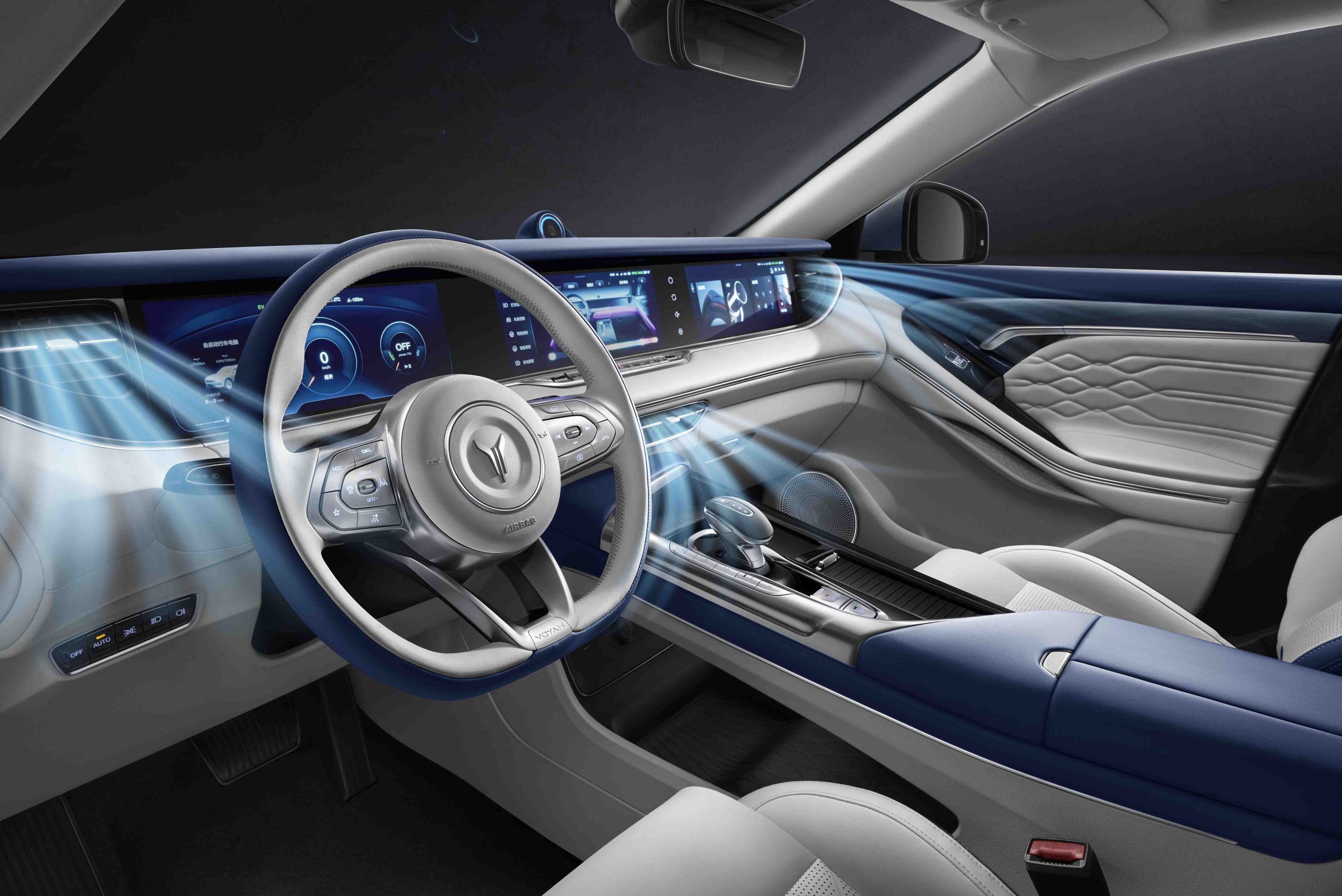 3 farklı ekranı ve yan havalandırma menfezlerini kapsayacak şekilde yerinden yükselebilen kokpit tasarımıyla otomotiv sektöründe devrimsel bir yeniliği gerçek kılan Voyah Free, bu sayede yolcuların ferahlık hissini artırabiliyor ya da ekranlara ihtiyaç olmaması durumunda gözden uzak olabilmesini sağlıyor. Kademesiz renk değiştirme seçeneğiyle ambiyans aydınlatması tam renkli gam ritmi ortam ışığına imkan veriyor. Voyah Free’nin konfor teknolojileri kapsamında standart olarak sunulan “Akıllı Kısılabilir Panaromik Sanal Perde”, ultraviyole ışınlarının yüzde 99.9’unu bloke etmek için 10 farklı ışık geçirgenliği seviyesinde ayarlanabiliyor.