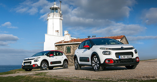 Citroën C3: Citroën’in sıradışı tasarıma sahip B segmenti hatchback modeli C3, sektörde çığır açacak ilkler ve öncü teknolojilerle yollara çıkmıştı. Citroën C3, Airbump teknolojili karoser yapısı, siyah renkli çamurlukları ve segmentinin en geniş tekerlek yuvalarıyla Crossover benzeri iddialı bir dış görünüme sahip. Kabinine adım atar atmaz hissedilen, titizlikle işlenmiş döşemeleri, ev konforundaki koltukları ve yüksek konumlu yatay kokpiti sayesinde C3, iç mekan ferahlığı anlamında segmentinde fark yaratıyor. C3, en son nesil, performanslı ve ekonomik PureTech benzinli ve BlueHDi dizel motorlar ile birlikte sunuluyor. 1.2 litrelik PureTech 3 silindirli motor 82 HP’lik güce sahipken 1.6 litrelik dizel BlueHDi motor 75 HP ve 100 HP’lik Stop & Start teknolojisine sahip iki versiyon ile satışa sunuluyor. Citroën C3 ayrıca 1.6 VTi 115 HP’lik motor ve yeni tam otomatik EAT6 şanzıman seçeneğine sahip. Citroën C3’ün fiyatları 72.000 TL’den başlıyor.