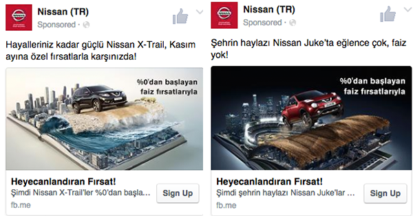 Facebook, Türkiye’de Facebook reklam ürünlerini kullanarak elde edilen bir başarıya dikkat çekti. Nissan Türkiye, Türkiye’deki 3 SUV modelinin satışlarını artırmak için Facebook Potansiyel Müşteri Reklamlarını (Lead ads) kullandı. Amacı, farkındalığı artırarak ilgiyi satışa çevirmek olan kampanya, yeni otomobil almaya niyetli olan kişilere odaklandı.