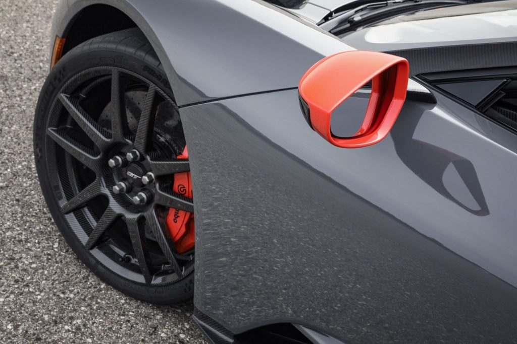 Karbon Serisi, özellikler ve gövde panelleri kadar düzenli Ford GT’ye benziyor ancak çıplak karbon fiber ve yeni vurgu renklerde tamamlanmış ekstra elemanlar ile öne çıkıyor.